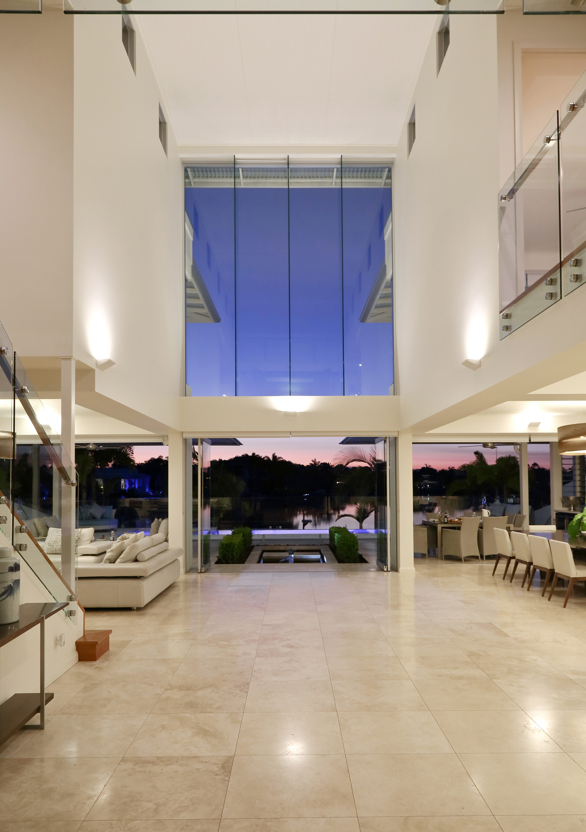 Nestled in the exclusive Noosa canalled enclave, this luxurious 5-star private waterfront residence is a serene escape surrounded by water. Travertine platforms over a fish pond lead to impressive 8-meter tall timber doors, unveiling breathtaking walls of glass framing a picturesque waterfront view reminiscent of a 'Monet' painting.